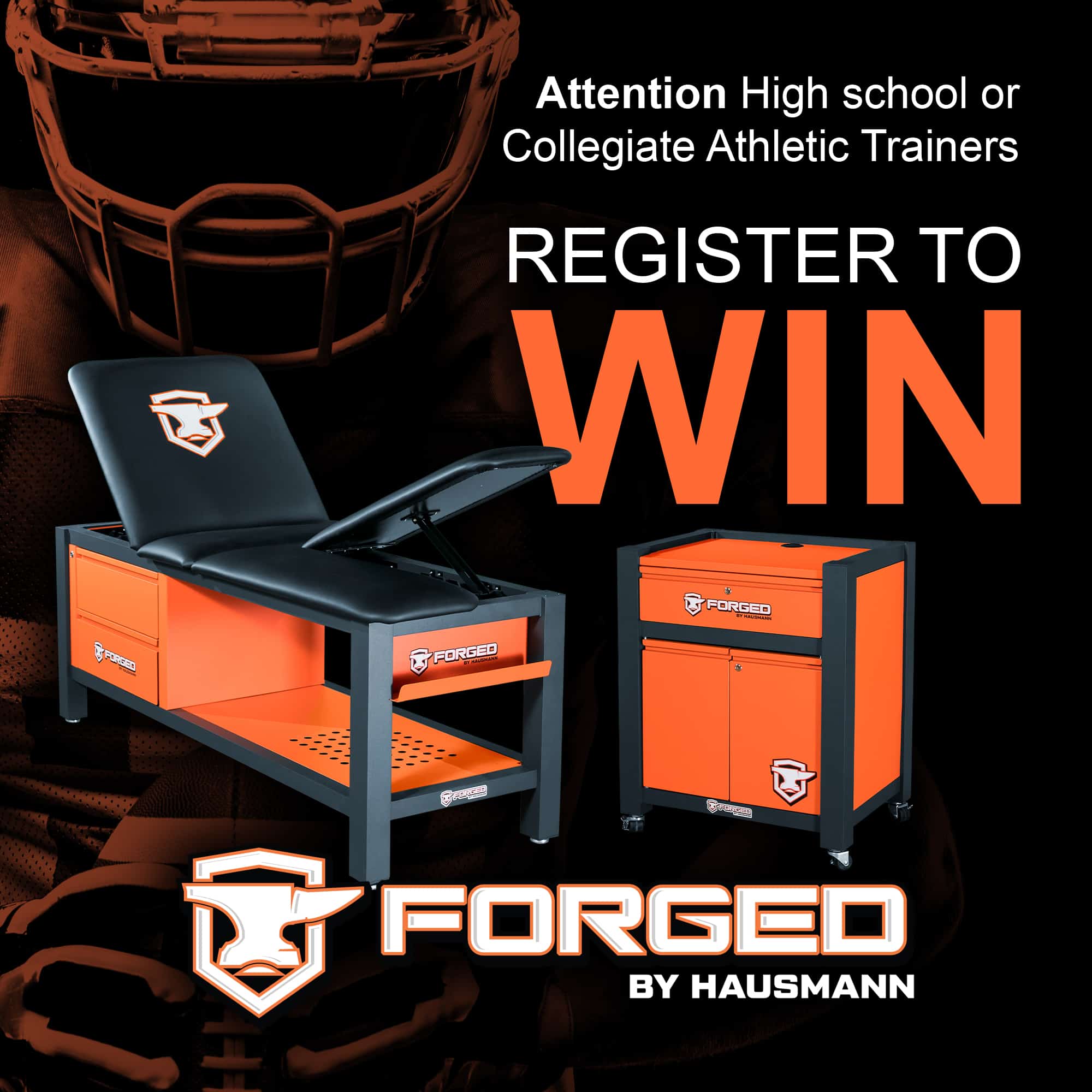 One lucky winner will take home a fully branded and customized Forged Treatment Table and a Forged Modality Cart — built tough for the demands of sports medicine professionals like you.